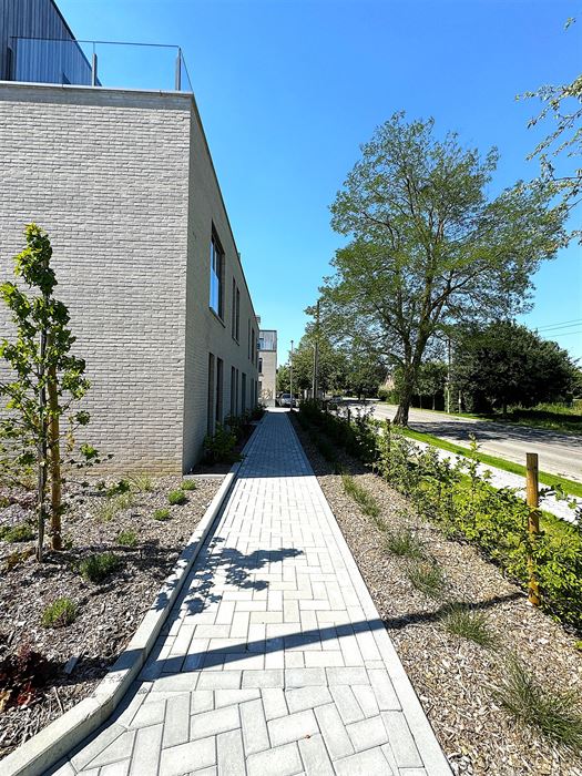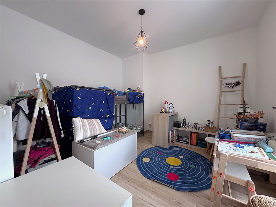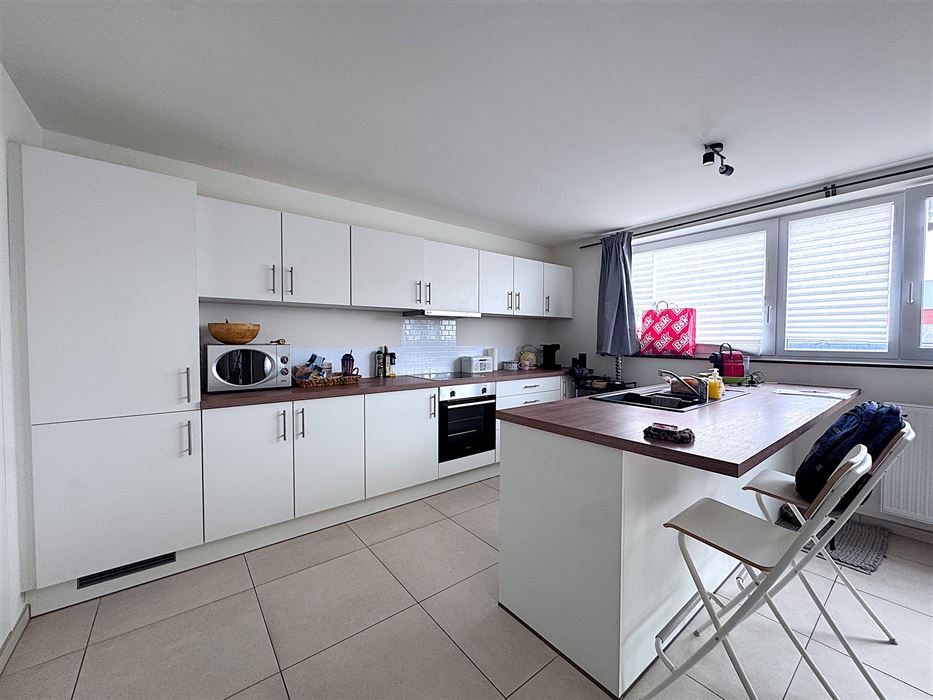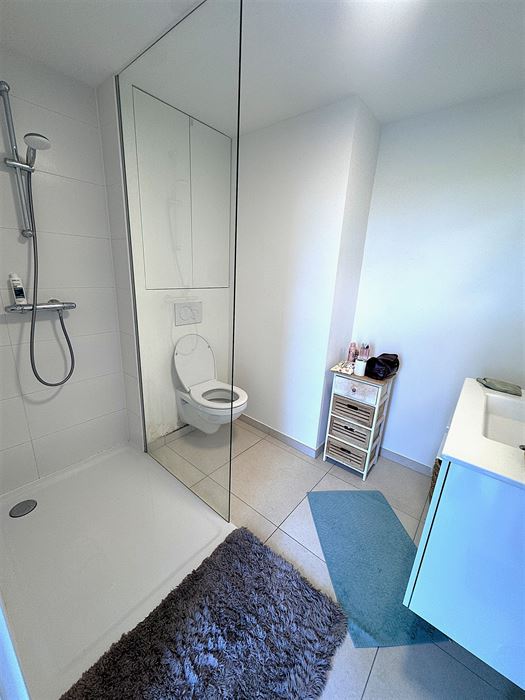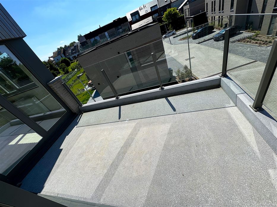 Au 2eme étage (dernier étage) (PEB B) : un appartement avec hall amenant à une chambre, une grande terrasse de 27m² sur l’avant du bâtiment, une salle de douche avec WC séparé, un grand séjour avec cuisine et meuble buanderie. Une 2eme terrasse de 10m². Cet appartement offre une une superficie totale de 70m².