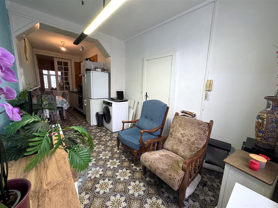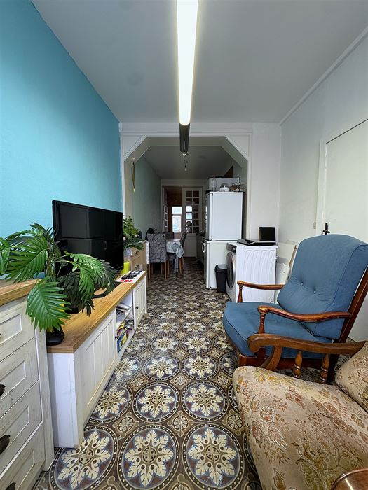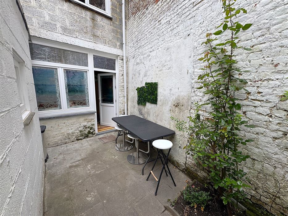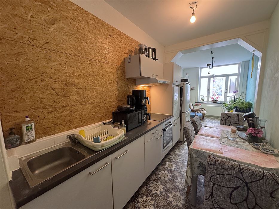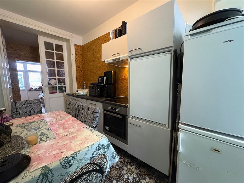 Un séjour/salle à manger avec une cuisine semi-équipée, une chambre de ±14,5m² avec cabine de douche, un WC séparé.