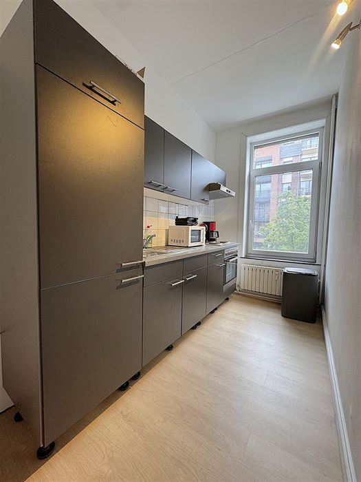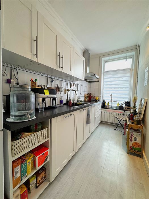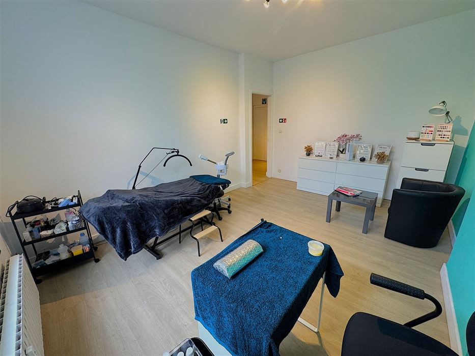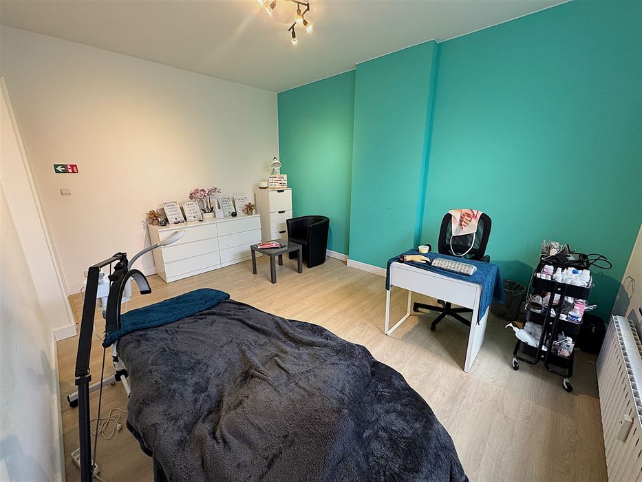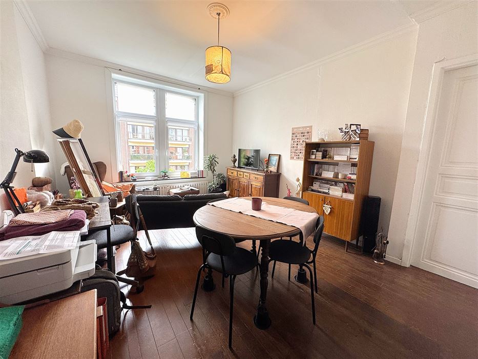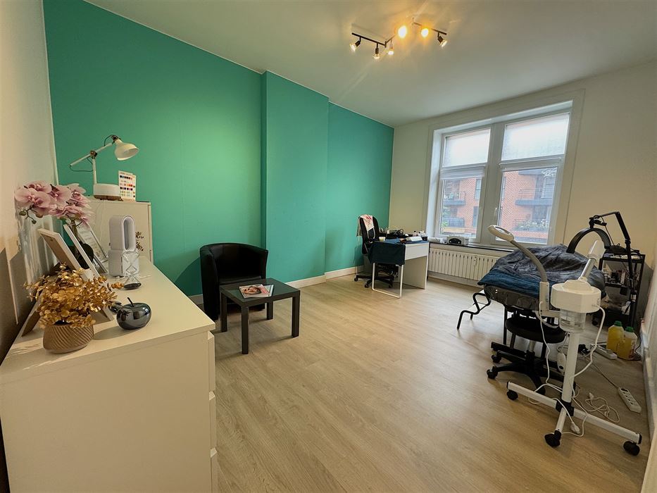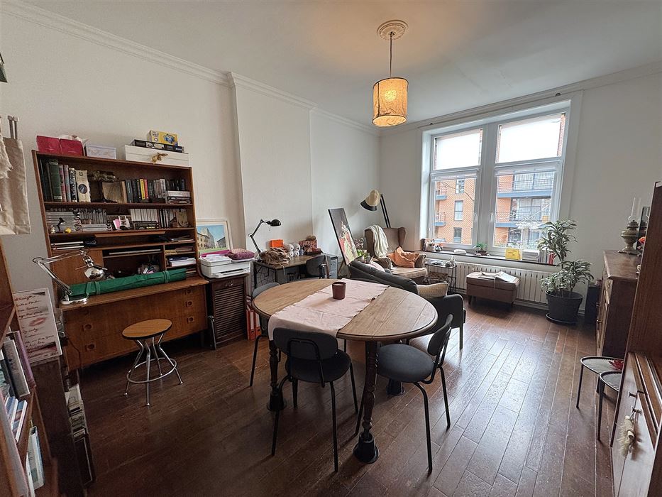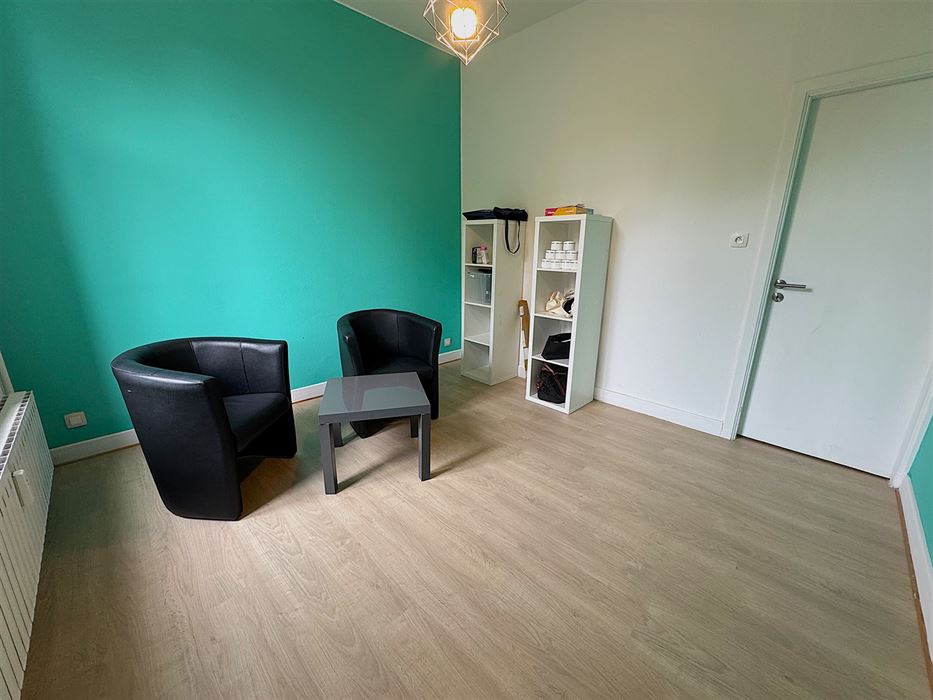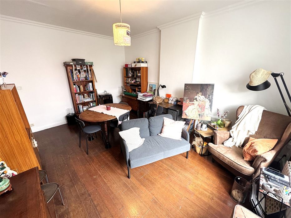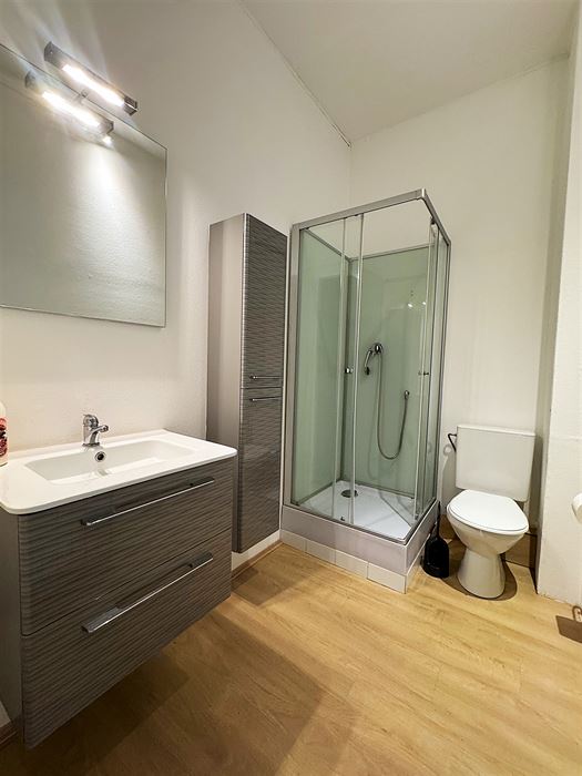 Au 1er étage nous avons un appartement 1 chambre reprenant un hall d’entrée, une cuisine, un séjour, une salle de douche et la chambre (+- 50m²)