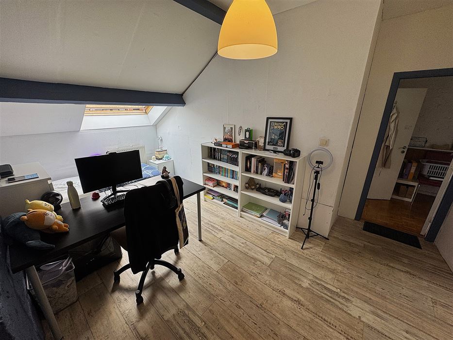 Au 2eme étage nous avons un duplex composé d’un hall d’entrée amenant vers le séjour, un cuisine, un coin rangement pouvant servir de buanderie ou salle de douche, une chambre ou un bureau.