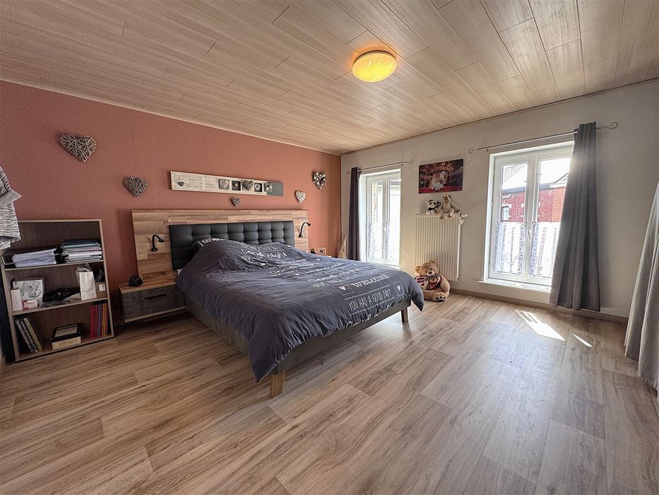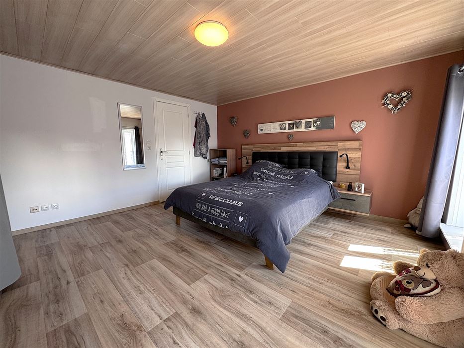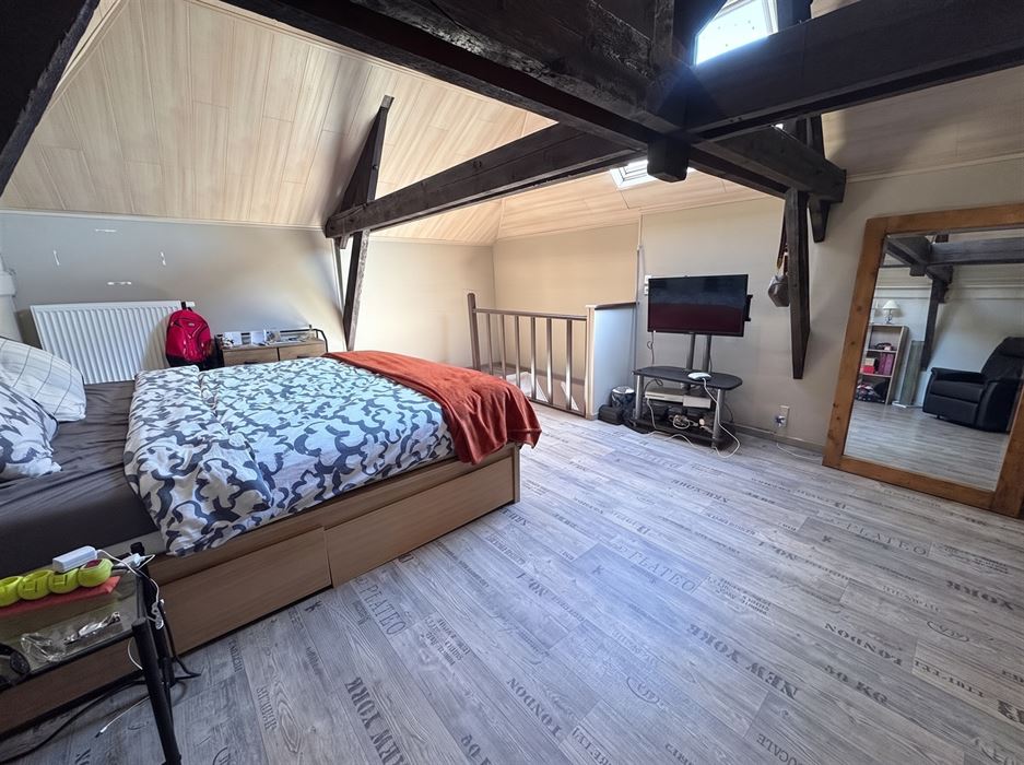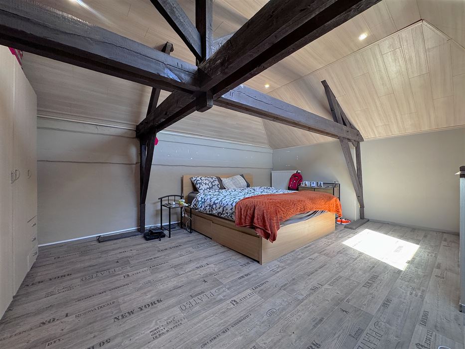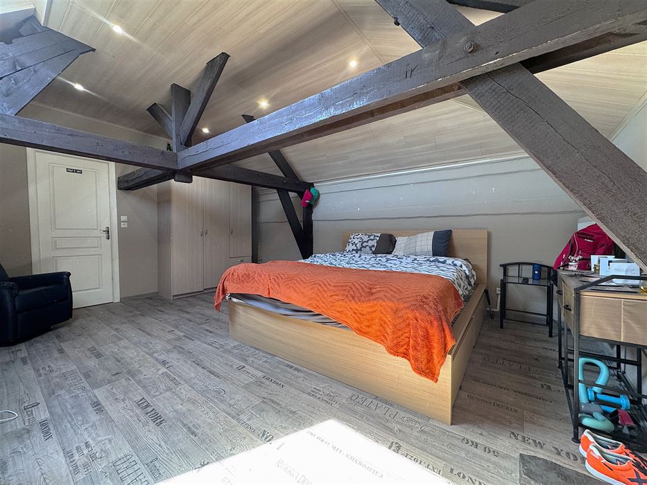 Au deuxième étage, une chambre de 24m²qui donne accès à un grenier de +-9m².