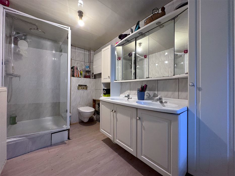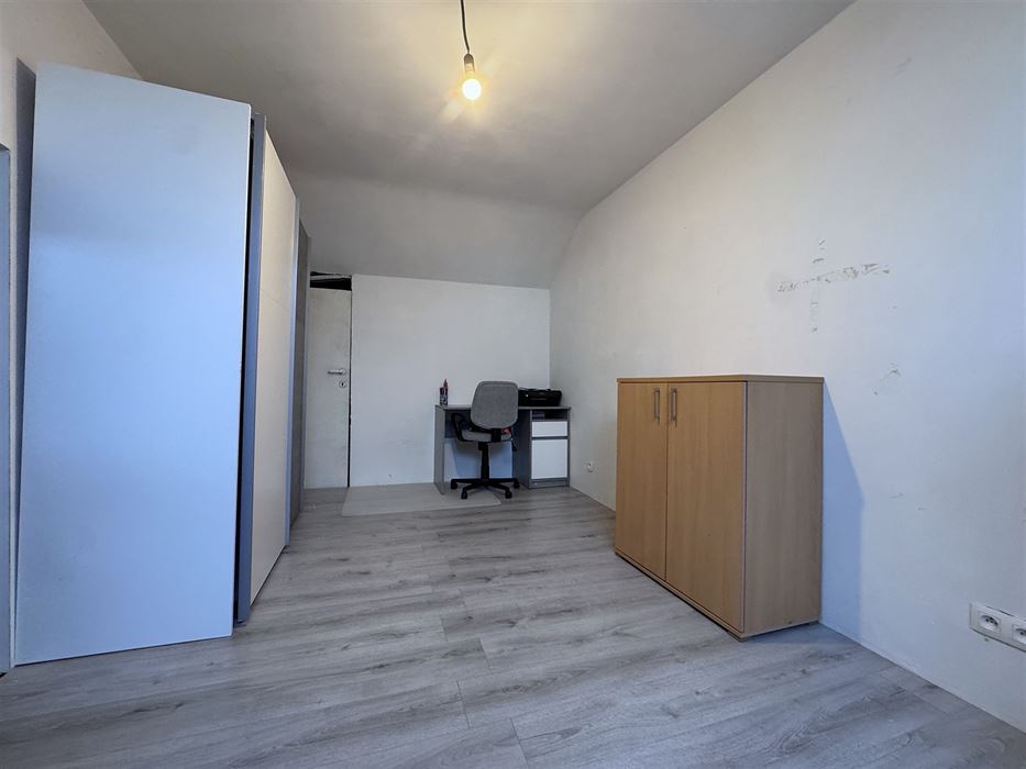 Au rez-de-chaussée, nous avons le living de +- 35m² ouvert sur la cuisine. Derrière la cuisine nous retrouvons une buanderie. un bureau/chambre est accessible via le living.