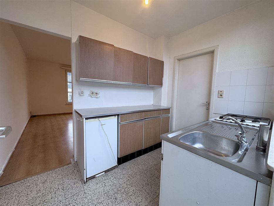 Le studio développe une superficie de 40 m² et se compose d’un living lumineux de ±30 m², d’une cuisine semi-équipée, d’une salle de douche et d’une terrasse de 5 m² accessible depuis la cuisine.