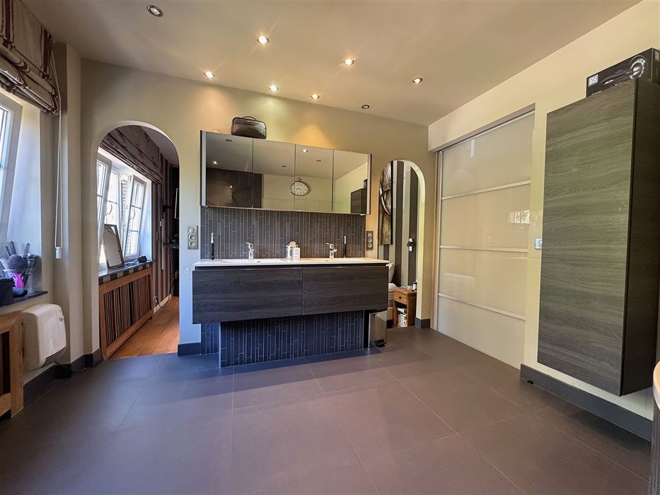 Nichée dans un environnement verdoyant, cette demeure d’exception séduit par ses volumes, la qualité de ses finitions et son cadre unique. Idéale pour une grande famille ou pour professions libérales, elle offre un confort absolu et un espace de vie rare. Le rez-de-chaussée se compose d’un vaste living baigné de lumière, d’une cuisine full équipée au design soigné, d’un grand hall d’entrée 30m2, d’un bureau indépendant de 52 m². À l’étage, vous trouverez 4 chambres spacieuses et de 2 salles d’eau ainsi qu’un grenier offrant la possibilité d’aménager jusqu’à trois chambres supplémentaires selon vos besoins et isolé. Entièrement cavée et carrelée, la maison dispose d’un système de chauffage central au gaz récent, garantissant confort et performance énergétique (D). À l’extérieur, le terrain de près de 80 ares, dont 40 ares boisés, offre un cadre naturel exceptionnel, intime et sans vis-à-vis. De plus, cette demeure possède également une dépendance de 50m2. Le parking illimité complète ce bien rare. Idéalement située à seulement 20 minutes de Nivelles, proche de toutes commodités, aéropôle, écoles et axes principaux. Faire offre à partir de 599 000€. frais d’agence à charge de l’acheteur 1,815%TVAC.